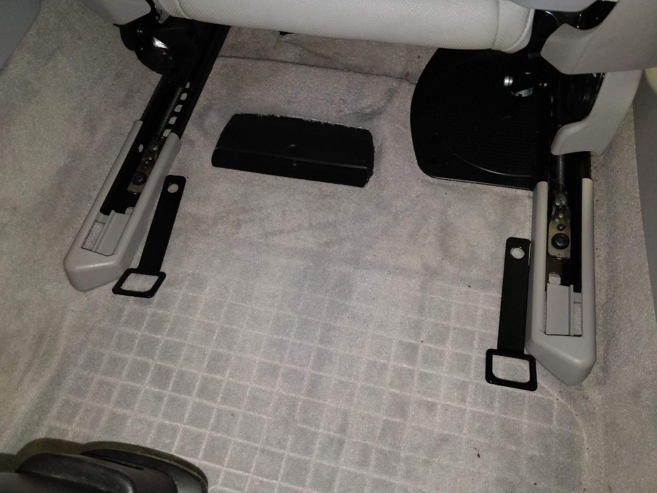 Liitteenä vielä kuvat kiskoista. Tuo kiinnityspultti houkuttelisi muuten, mutta jää noin 10-15 cm penkin alle kun sen siirtää matkustusasentoon (kuvassa ihan äärimmilleen edessä).
