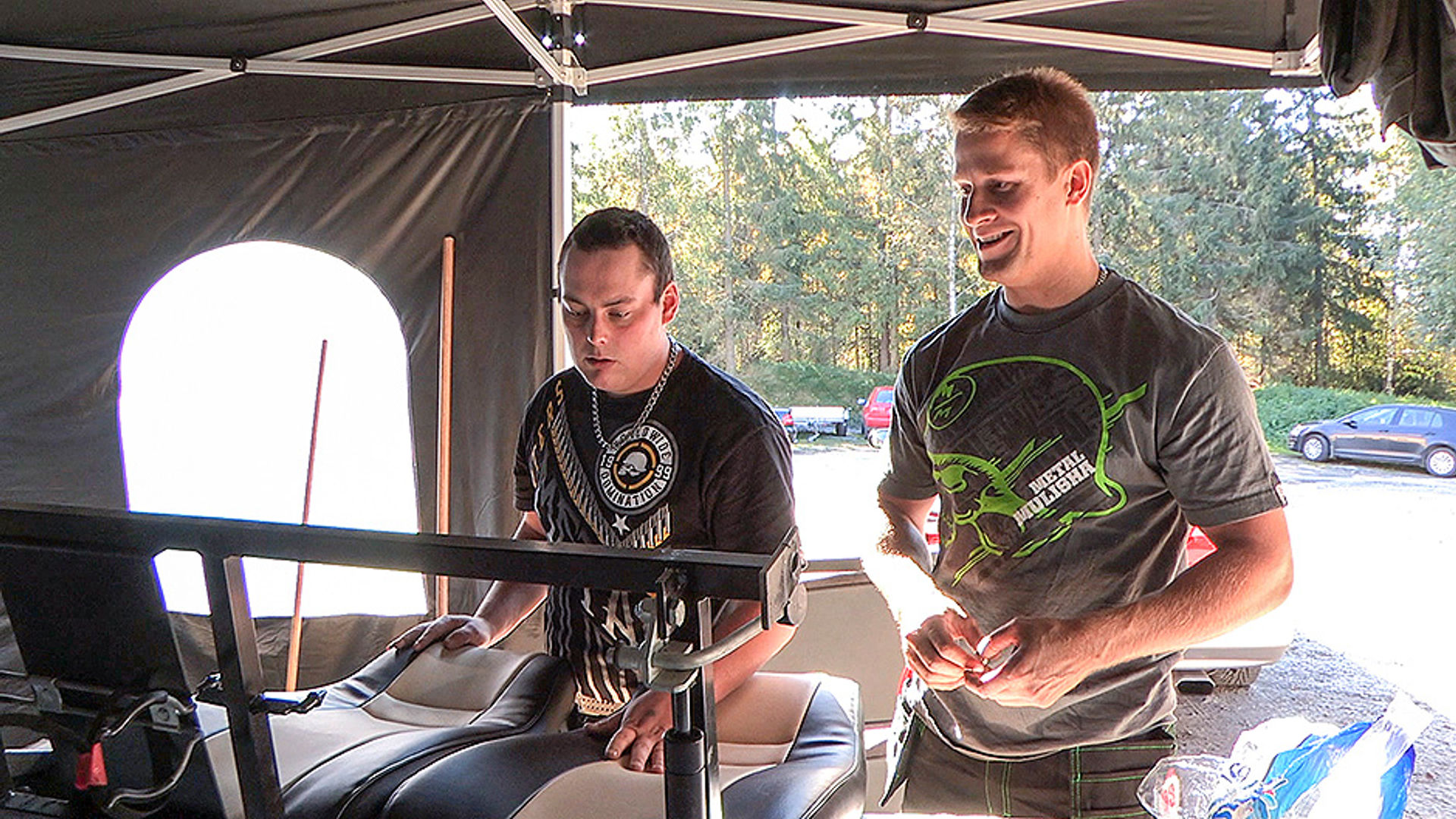 9/10. Katsastus lähenee ja poliisikin vierailee tallilla kaiuttimien äänekkään testauksen vuoksi. Välillä ehditään kokeilla myös autolla ajoa kahdella pyörällä.